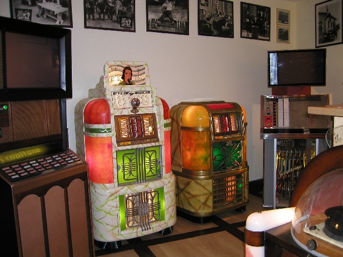 Scopitone ST16 (1964), sehr seltene Rock Ola Mystic Music 3701 Master (1941), Rock Ola Master Luxury Lightup (1940), Scopitone ST36 (1965).