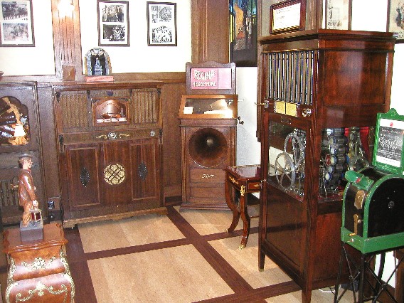 Western Electric Selectraphone (ca. 1926 pneumatische Maschine), Regina Hexaphone (1906, wählbar aus 6 Edison Walzen), Kalamazoo (1916, wählbar aus 24 Edison Walzen).