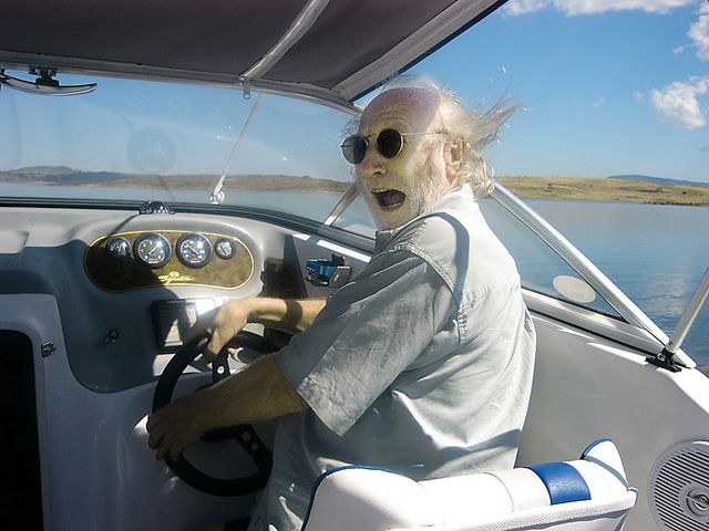 Karl Merkatz bei einer Bootsfahrt am Lake Jindabyne, AUS