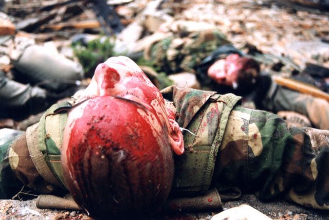 Blutende Soldaten am Schlachtfeld